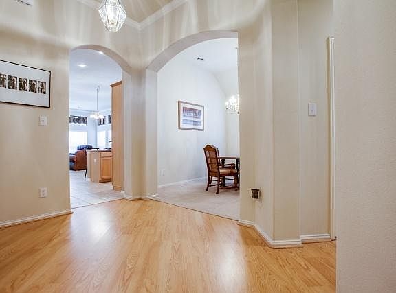 Wonderful 1 story some custom touches in The Trails! Handsome bricked covered front porch. Spacious entryway leads to formal dining & huge family room w FP open to kitchen w breakfast bar, granite CTS, elec cooktop, built-in microwave,oven & SS sink. Built-in desk & cabinets a plus! Kitchen plumbed for gas. Oversized master, beautiful bath w jetted tub, separate shower, and WI closet. Secondary bdrms split from master.