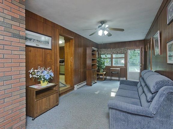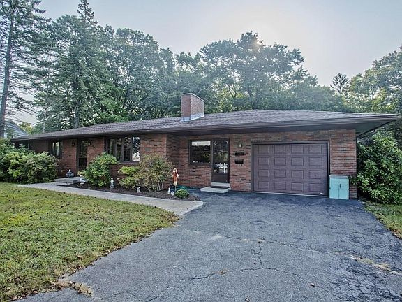 EXECUTIVE BRICK RANCH: Very spacious one owner home. Nice breezeway between garage and kitchen. Large kitchen with built-in range and cooktop, plenty of cabinets and a generous sized dining area. Living room with hardwood floors and a fireplace. Three bedrooms also with hardwood floors. So much potential for additional living space in the expansive unfinished basement. All set on a large, treed lot. Convenient to shopping and traveling (Mass. Pike, I-391). 1 Year AHS Home Protection Plan Included!
