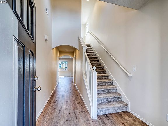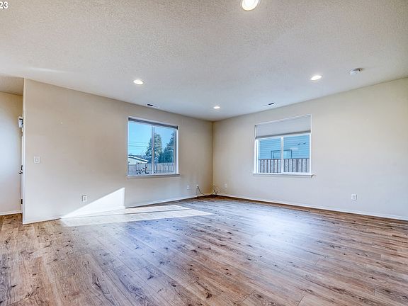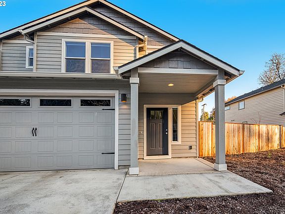 Fantastic newer custom home with beautiful finishes!! This light and bright, open-concept home features lovely laminate flooring throughout the lower level and high ceilings. Kitchen has stainless steel appliances, beautiful subway tile backsplash, a pantry, island and a drink bar complete with a built-in wine cooler! Large primary suite has attached bathroom with double sinks and a walk-in closet. Laundry room with a sink conveniently located on the upper level near bedrooms. Spacious yard with a covered patio and plenty of room for gardening. Bike or walk to the river trails, Autzen Stadium, or the many popular eateries in downtown Springfield!
