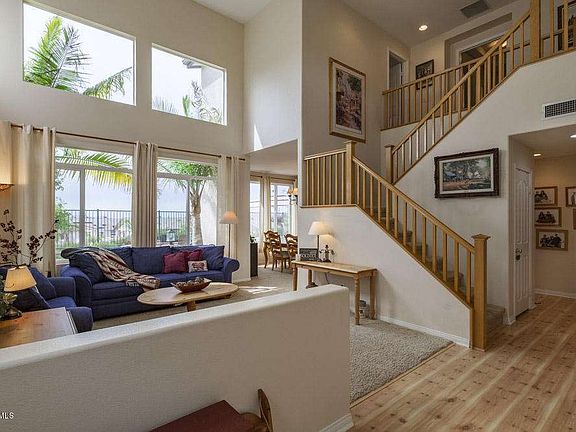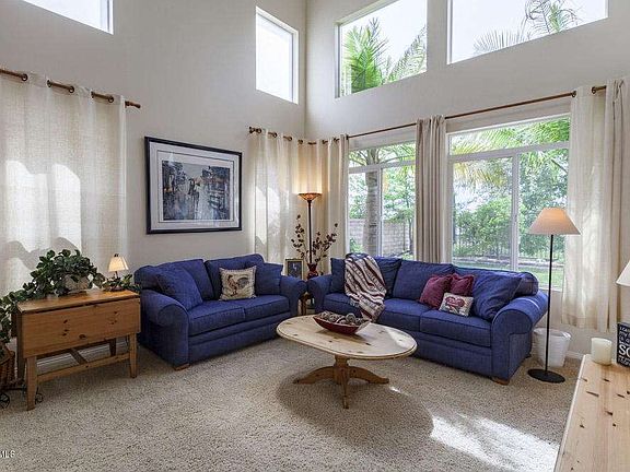 Enter this light and bright home with large windows in the living room, dining room and family room that over look beautiful views and amazing sunsets. The huge eat-in kitchen has more than ample cabinet space, a large island, walk in pantry and a desk nook, all of which opens up to the family room with a fireplace & an entertainers backyard with built in BBQ & sink, mini fridge & gas piped fire pit. 1 bedroom & bath downstairs & a 3 car, side-by-side garage. In addition to the expansive views & fireplace in master bedroom suite, there are 2 walk-in closets, a giant tub, shower and dual sinks. There are also 3 more good sized bedrooms upstairs along with a full bathroom and the laundry room. A whole house fan helps conserve energy and keep the house cool, along with dual pane windows.