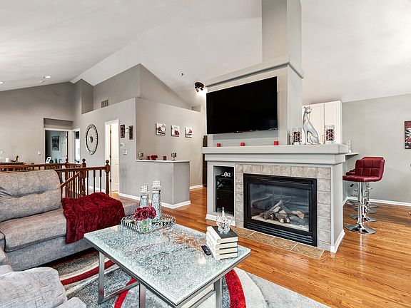 This stunning end-unit townhome offers the space and feel of a single-family residence, with high-end updates throughout. Step into the bright and airy main level featuring vaulted ceilings, gleaming hardwood floors, and updated windows that fill the space with natural light. Freshly painted from top to bottom, this home is truly move-in ready. The renovated kitchen boasts white shaker cabinets, quartz countertops, a subway tile backsplash, and a convenient breakfast bar-perfect for everyday living and entertaining. The spacious living room is centered around a cozy fireplace and flows seamlessly into an oversized dining area with sliding glass doors that open to a private balcony. Loft area is ideal for a home office or bar. The generous primary suite features a walk-in closet, an additional closet, and shared access to the full bath with linen storage. A second large bedroom offers dual closets for ample storage.The fully finished lower level adds incredible living space, complete with a huge family room, second fireplace, full bathroom, and laundry room. There's also plenty of space to easily add a third bedroom if desired. Enjoy the convenience of an attached 2-car garage with direct entry into the home. Exterior updates include newer roof, siding, and a private driveway. Truly nothing to do but move in and unpack. Don't miss this rare opportunity-schedule your showing today!