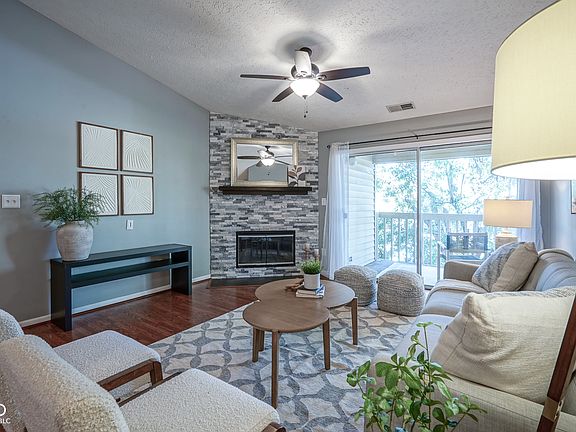 Condo living at its finest in Carmel! This inviting 2-bedroom, 2-bath condo combines modern style & low-maintenance living with a sought-after location within walking distance from all that Carmel has to offer. Soaring vaulted ceilings and a wood-burning fireplace with floor-to-ceiling stonework define the spacious Great Room, while the Owner's Suite vaulted ceiling adds an airy feel. Enjoy the luxury of no upstairs neighbors, plus a thoughtful split-bedroom & bath design offering optimal privacy. Both bedrooms feature generous walk-in closets for added storage. The kitchen features granite countertops, stacked stone backsplash, and stainless steel appliances and leads to full laundry room with space for washer & dryer. Unwind and relax on your private covered balcony, or explore the nearby Monon Trail, Carmel Arts & Design District, Carmel City Center & The Palladium - all just steps away! Locked storage closet in building, and dedicated parking spot are included. Community amenities include Clubhouse, Fitness Center, Swimming Pool, Basketball and Tennis Courts. This condo is move-in ready and perfect for those seeking convenience, comfort, style, and a prime location!
