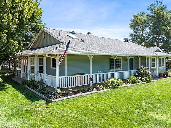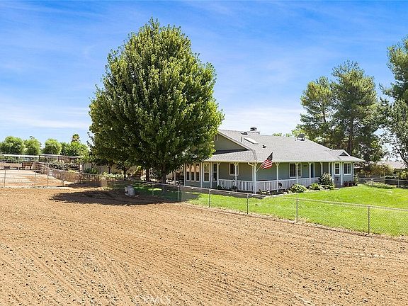 Gorgeous 3-bedroom, 2-bathroom farmhouse built in 2005 offers a serene and picturesque living experience. Situated on 1.3 acres of usable land, the property boasts a large wrap-around porch that provides stunning views of snow-capped mountains. The home features an open floor plan that includes a spacious kitchen equipped with newer stainless steel appliances, a dining area, and a living room with a natural gas fireplace. The interior is adorned with custom finishes, and every window provides picturesque views of the surroundings. The Main Suite bedroom is a highlight, offering dual closets, a retreat area, and an en-suite bathroom complete with a jetted tub, separate shower, and dual sink vanity. Storage space is ample throughout the property. A breezeway connects the main house to a three-car finished garage. The property's lush landscaping is taken care of by drip and sprinkler systems, and the mature shade trees offer comfortable sitting areas to enjoy the cool breeze. A 14x20 natural-style pool (4500 gallons) with a soothing waterfall adds to the relaxing atmosphere. For those interested in equestrian activities, the property comes with impressive horse facilities. These include four 16x24 corrals with covers, pasture turnout area, trailer parking, a tractor barn, tack room/hay storage area, and a wash rack. If you have a green thumb, you'll appreciate the fruit producing trees and vines which include Cherry, Apricot, Plum, blackberry bushes, etc. and raised garden beds with lots of vegetable growing capacity. The property's utilities include well water, natural gas, and a septic system. Additionally, the presence of 10 paid for solar panels helps keep electric bills low. High-speed internet and TV services from Frontier are already installed for your convenience. This property provides a fantastic blend of comfortable living, breathtaking views, and the opportunity to enjoy equestrian and farming activities. It truly appears to be a unique and appealing place to call home. Only minutes to the freeway and the beautiful apple orchards of Oak Glen, yet quiet and comfortable place to live . Property is Zoned R-A-1