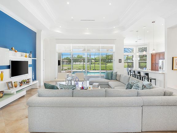 Custom Pamplona Grand model on waterfront, estate lot with 4 beds, 3 baths and private heated pool. Full house auto generator and accordion shutters. This expansive, open floor plan home includes designer finishes, tile and engineered wood flooring (no carpet), a spacious gourmet kitchen, upgraded bathrooms, custom built-in closets, crown molding, plantation shutters, extended screen enclosed patio, 2020 dual A/C, and more. Experience the epitome of luxury living in the exclusive active adult community, Valencia Reserve. Amenities include an active clubhouse, cafe, tennis, pickleball, bocce, pools, and fitness center. A must see and move in ready!