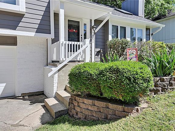 Incredible value in Overland Park! Recent updates include all new Gauntlet Gray exterior paint with white accents (May 2024), many rooms with fresh interior paint (June 2024), a newer roof with impact resistant shingles, skylight and gutters (2023), new garage doors and wi-fi operated motors (March 2021), and a newer water heater (2020). You are greeted when you walk through the front door with a large living room featuring a brick gas fireplace, custom shelving, skylights and a vaulted ceiling. Buyers will love the kitchen- offering tons of cabinetry, views of the living room, lots of counterspace, stainless steel appliances, and an adjoining dining space with a sliding glass door to access the HUGE deck. The primary suite has a walk-in closet, a room size that will comfortably accommodate a king-size bed, and an adjoining updated primary bathroom. A barn door gives privacy between the bedroom and bathroom. The bathroom has updated vinyl flooring, a newer vanity, and a tiled shower. Secondary bedrooms all feature carpet and nice closets. The secondary bathroom has a tub over shower combination with a tiled surround. The finished basement is a walkout- giving you lots of natural light and a bonus living space with adjoining laundry and adjoining updated half bathroom. The house has great outdoor spaces with a fully fenced-in yard, a large deck, beautiful landscaping, and an additional patio. Need storage? The home includes a great subbasement for additional storage and a deep garage that can accommodate shelving, etc. While this house is move-in ready, it is priced to reflect that someone might want to make a few updates. You can't beat the location- close to highway access, Lenexa city pool, and also has nearby parks & walking trails. Call today!