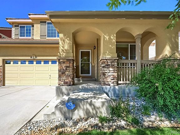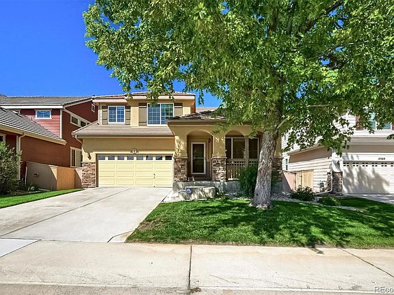 This Highlands Ranch home offers a convenient location close to all amenities, including a short walk to the Rec Center and shopping. The Southeast-facing property boasts hardwood floors, stainless steel appliances, covered porch, a concrete patio, and low-maintenance yard. Step inside the soaring living room, which serves as an ideal space for formal dining and sitting. Refinished wooden floors flow seamlessly into a family room featuring a gas fireplace, perfect for entertaining. The family room leads to a spacious kitchen with granite countertops, well-suited for home chefs, with an informal dining area, stainless steel appliances and a generous counter space. Ascend the open stairwell to the upper level, which offers a large loft and three good-sized bedrooms. Among these peaceful spaces is a primary suite equipped with a walk-in closet and an updated primary bathroom. The newly finished lower level provides a personalized escape for movie nights or cheering on your favorite team. Outside, the concrete patio is surrounded by private fencing and mature plantings, providing a great space for relaxation. Professionally installed cabinets, and polyaspartic coated flooring in the fully insulated garage, provides ample storage and space for work area. Enjoy easy access to open space, parks, trails, and the Southridge Recreation Center/Park.