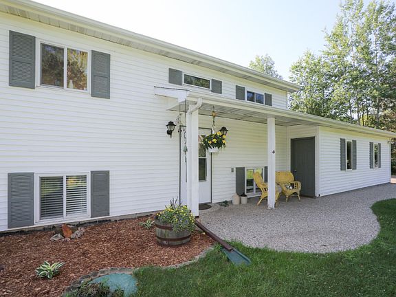 Wonderful 3 bed/2bath bi-level home on just over 3 acres. Large yard, covered front patio/porch and large back deck makes for easy entertaining with friends and family or just relaxing with a cold drink. 2 stall attached garage and crushed asphalt driveway. Pride of ownership shines though in this home with a very warm & welcoming feel. Open, airy floor-plan, many updates including carpet, paint, appliances and more. Lovely landscaping, bonfire pit, pond, and a large garden area. Make this house your home today.