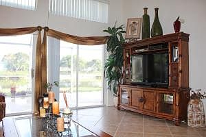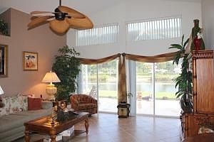 Stunning Lake Front Property. Enjoy Florida Living At Its Very Best in this beautifully upgraded home that shows light & airy with its abundant windows, vaulted ceiling and great floor plan for entertaining. Large gourmet kitchen with plentiful counter & storage space & full wall of custom pantry space, formal dining room, large & relaxing living room, inside laundry, private master suite with spa like master bath, tile floors, custom paint & many designer touches throughout. Enjoy a meal overlooking the lake on your screened patio. Your beautiful surroundings include a custom Driveway & lush tropical landscaping.You will LOVE this immaculate home that's located in a fun & friendly neighborhood. You will feel like you're on vacation every day. Florida living doesn't get better than this!