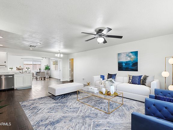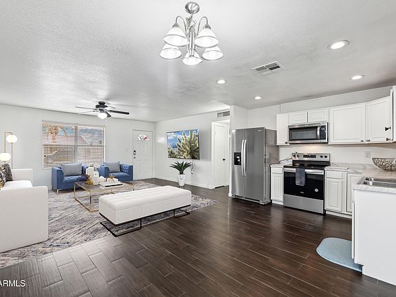 FRESH PAINT IN & OUT! RV ACCESS! NO HOA! ALL NEW 2025 KITCHEN APPLIANCES! NEW HOT WATER HEATER 2024. New garage door opener motor with wifi 2023. JUST 5 MINS to Peoria Entertainment District & Glendale Stadium amenities and 101 Access! Perfect starter home or investment opp. Huge yard with room for a pool! Delightful evenings under one of 2 Pergolas with cozy firepit, ALL outdoor furniture shown is INCLUDED! Enjoy the huge slab patio w/bistro lights & artificial turf lawn and low maintenance yard. The W/D with Under pedestal storage drawers ALL CONVEY. Storage shop off the 1-car garage & pass through access to patio. Great dog enclosure on cool North side. Perfect for anyone wanting to be near dining, shopping, entertainment, sports and freeway access!