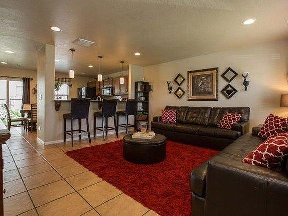 Charming 4 bedroom home siding to green belt in Idaho Creek. Enjoy a short walk to the community park or 40 acre Idaho Creek open space with miles of trails. Beautiful open kitchen with bar top and kitchen nook includes tile floors, granite countertops, farm sink, subway tile backsplash and pantry. Wood blinds, sprinkler system & central AC included. Must be able to verify income at 2x rent. Tenant responsible for all utilities.