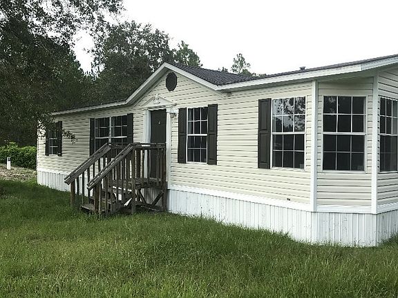 MOVE IN READY! 3 bedroom, 2 bathroom manufactured home on spacious one acre lot. Open concept with split floorplan. Brand new laminate wood plank flooring in family room. Open kitchen with plenty of cabinet space and an island overlooking dining area. Large master suite features a walk in closet, tiled garden tub, stand up shower and a dual vanity. The additional 2 bedrooms are spacious with tub/shower combo in hall area. In addition to the new flooring in common areas, this home was updated with new skirting and custom window seals and the carpets were freshly cleaned. The back yard includes a work shed and is wire fenced with plenty of space for kids or animals to play.