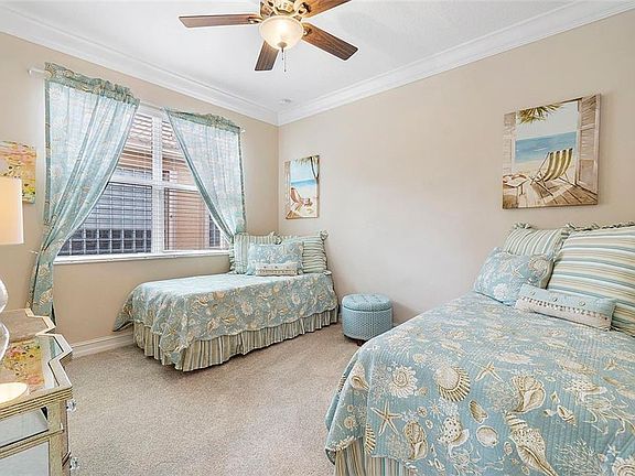 Beautiful Gibraltar model on the lake! 4 bedroom, 2.5 bath home with an amazing extended patio with gorgeous lake views!! The home has been gently used by snowbirds since it was purchased in 2013 & is beautifully furnished, has accordion shutters & custom window treatments, custom area rugs, high ceilings, large primary bedroom, built in closet systems and so much more! 4th bedroom currently being used as an office. Valencia Reserve is an over 55 community with tons of amenities including a cafe, pickleball, tennis, gym and more.