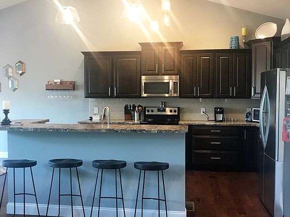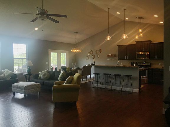 Gorgeous ranch situated in The Falls at Little Creek is just three years young! Travel on gleaming, wide plank hardwood floors into incredibly open spaces with soaring vaulted ceiling and tons of natural light. Kitchen with sparkling countertops, stainless steel appliances, and breakfast bar overlooks the Living Room and combined Dining area. Just down the hall you'll find main floor laundry, full hall bath, two additional bedrooms, and the Master Suite with vaulted ceiling, large walk-in closet, and bath with soaking tub, dual vanities, and walk-in shower. Step outside onto the composite deck, perfect for entertaining family and friends. The walk-out Basement opens to patio and generous, fenced-in backyard. Complete with generous 3 car carriage style garage and beautiful landscaping. Located in a friendly, new neighborhood with tons of events to participate in throughout the year!