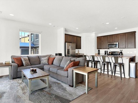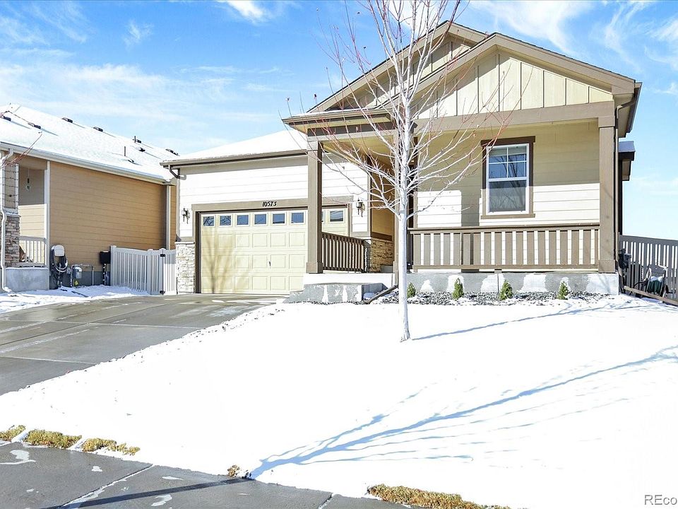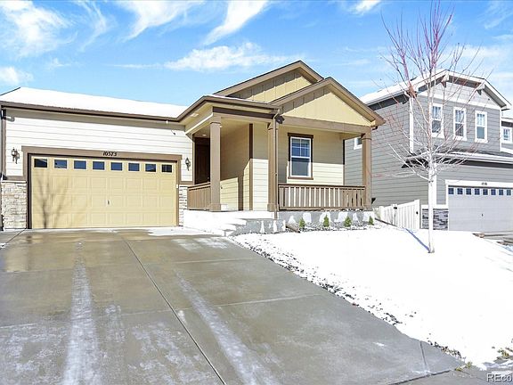 Nestled in the heart of Belle Creek, this 2019-built ranch exudes a "like new" charm. Step inside to discover an abundance of natural light and stunning tile flooring. The gourmet kitchen, complete with quartz countertops, a large island, and a gas stove, beckons you to unleash your inner chef. Retreat to the primary suite with its walk-in closet, and start your day by enjoying the sunrise on your covered back porch. With close proximity to Belle Creek Trail, the community recreation center, and garden, this one-level living experience has never been more appealing!