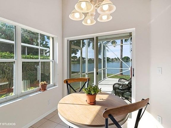 Fabulous renovated waterfront townhome, 3 bedrooms, 2.5 bathrooms with bonus loft space. Gorgeous large kitchen and bathrooms and new carpet. Stunning view of gorgeous lake, beautiful sunsets. Filled with light, eat-in kitchen with separate dining area and large waterview living area. Huge first floor master bedroom with double closets. Masterbath has double sinks, quartz countertops, soaking tub and large walk in shower. Separate laundry room. Upstairs has two large guest rooms and full bath, and sun-filled loft sitting area. Fully protected home with accordian hurricane shutters. One-car garage and two car parking in driveway. This neighborhood is known for its well-managed properties, convenient location and amenities. Two pools, gym, private playground and manned gate create easy,