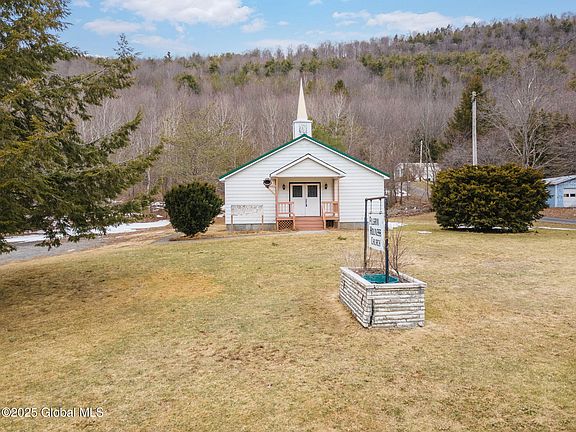 Charming Chapel for sale - Endless Potential! Nestled between Cobleskill and Oneonta, this picturesque chapel offers a unique opportunity for various uses. Featuring a timeless steeple atop a newer metal roof, 1800 sq. ft. sanctuary (30X60) is filled with natural light, high ceilings, and historic wooden pews. Two half baths add convenience. A full basement with dual stairways provides ample storage or additional space. Outside, enjoy a peaceful yard perfect for gatherings and ample off-street parking for easy access. Endless possibilities await-bring your vision and make this charming chapel your own! This is a must see!