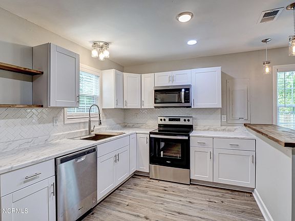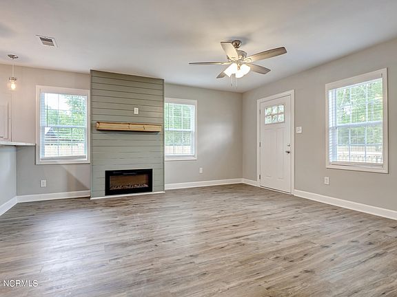 Enjoy country living in this newly renovated cottage situated on the back of over 1/2 an acre. Enjoy the view of the large front yard from the deck or the private backyard from the screened in porch. Enter the house to an open floor plan where you will find all new finishes including LVP flooring, new tile bathrooms, an all new kitchen, gorgeous shiplap fireplace, and custom barn doors which conceal the conveniently located washer and dryer, all of which convey. This is the perfect home for the first time buyer, investor, or family looking for their own slice of southern living! The primary bedroom is accompanied by an adjoining full bathroom. The full bath in the hall is convenient to both additional bedrooms, providing plenty of space for family and friends. Both front bedrooms include spacious closets and plenty of natural light, perfect for converting one room into a home office. There is a wired building at the rear of the property, perfect for all of your projects. A new fence on two sides of the property provides you with privacy while leaving enough space to feel the openness of the lot.