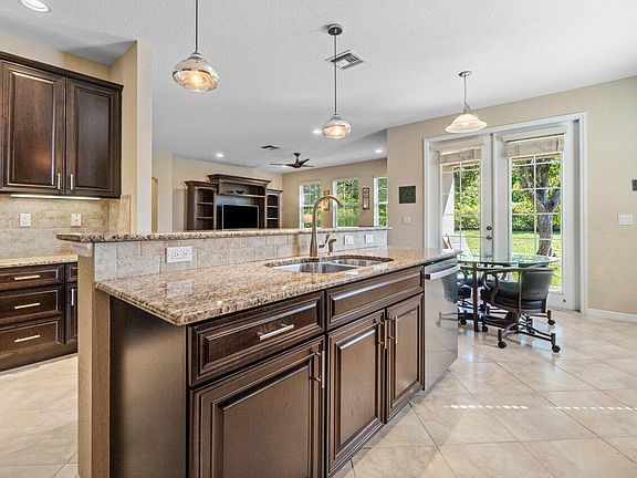 Rarely available 'Onyx' model - largest 1-story in Oakmont! 2012 built by Pulte in a boutique, gated community of 202 homes. 4 bedrooms + den/office, 3.5 baths, 3 car garage w/ Southeast exposure. You will be wowed by the open floor plan and the thoughtful architectural details. If you are looking for spacious living on one level, you've found it! Large espresso maple kitchen w/ ample counter space, granite counters & subway pattern backsplash is central and open to family room, breakfast room & dining room. 3-way split bedroom floor plan has a private front-of-the-house guest room w/ full bath. 2 secondary bedrooms tucked away in a private hallway share a 2nd bath + guest half bath! All bedrooms have LVP flooring - no carpet! Master bedroom is a true sanctuary in rear of home w/ views of the private, treed yard. Ensuite spa-like bath has dual vanities, roman tub, separate shower and huge walk-in closet. IMPACT GLASS windows and doors make storm prep a breeze! Peace of mind with a 2022 AC | 2022 refrigerator | 2024 washer/dryer | 2025 dishwasher.