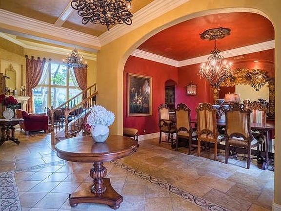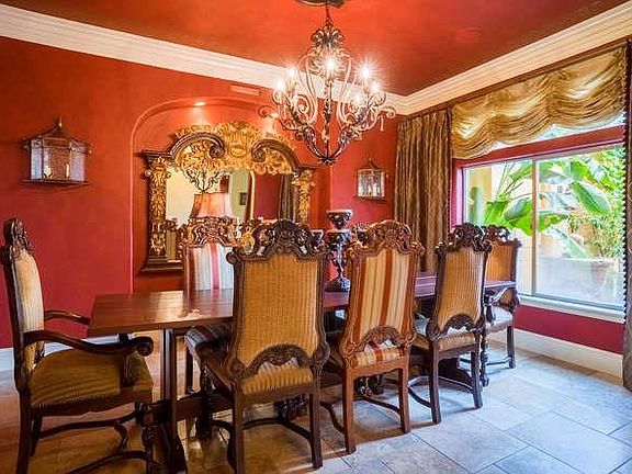 Fantastic custom cornerstone located at Country Club at the Fort. Front entry features a private courtyard with a pizza oven, sitting area and soothing fountain. As you enter the foyer be prepared to be impressed. Great room is grand w/ vaulted ceilings, wood beams and fireplace. Kitchen is open to the eating area and features two walk in pantries. Owner's suite is on the main level with a second room that works well as an isolated bedroom or second family room. Lots of flexibility in the floor plan depending on preferences. Home features tile and hard wood flooring, bronze iron light fixtures, plantation shutters, and custom draperies. The lush backyard has pool/spa, outdoor kitchen, and large covered patio for entertaining or dining outdoors. This house has it all! Bed/bath count differs from tax records.