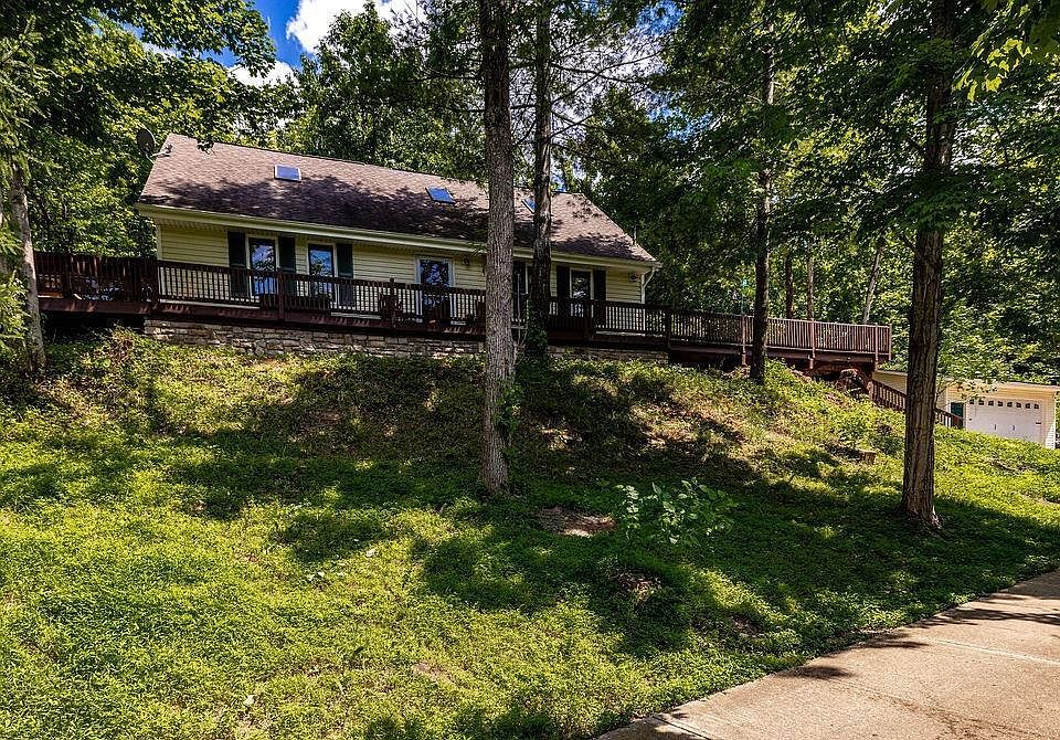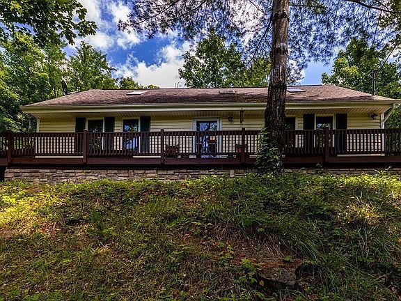 Welcome to your personal retreat, over 1 acre of privacy nestled in the hillside with that secluded feel but convenient access to many amenities. Completely updated by current owner. New flooring, kitchen, w/ counter bar open to large-light filled living rm, entertain on your expansive deck off of your enclosed 3 seasons room. Office/loft off of the primary bdrm, with bath attached, subway tile shower,w/skylight. 2-car det. garage and shed! Plenty of rm for entertaining. Don't miss this one.
