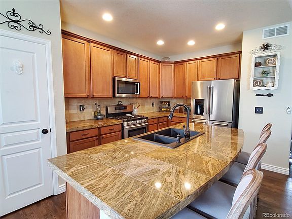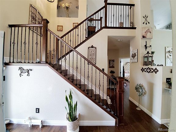 Beautiful fully remodeled house in Turnberry, hardwood floors throughout, granite counter tops, fully remodeled bathrooms, full finished basement. Recently interior and exterior professionally painted. Main floor master with five piece bathroom includes a claw foot tub, and walk-in closet. Very spacious loft-area/living room on the second floor with a full remodeled bathroom and two bedrooms. Hardwood stairs lead to the second floor and basement. The basement offers an office space and bedroom, laundry room, and brand new bathroom with a huge linen closet. Main floor offers two living room areas and dining room space and vaulted ceilings. Gorgeous trees offer shade in the front, enjoy the back yard with unique cement slab and sidewalks on both sides of the house. Basement windows include exterior window well coverings. Within a one block walking distance to park, and walking distance to Turnberry Elementary. Easy access to I-76 and Highway 85. Turnberry Neighborhood pool within walking distance.