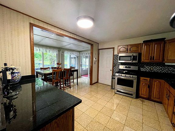 Welcome Home! Numerous updates at a great price make this home extremely appealing in today's housing market. Huge deck off the back for relaxing or entertaining family and friends. The three season room could easily be turned into a four season room. New roof and vinyl siding in 2011. There is only one layer. Kitchen was remodeled in 2016 with granite counter tops and flooring. New bay window in the living room and numerous other windows were replaced in 2016. New ceramic tile in the family room and laundry room in 2016. New metal chimney installed in 2016. Bathroom remodeled in 2021 with a new toilet, tub, sink, quartz counter top, and granite floors. This is a must see before it is gone.