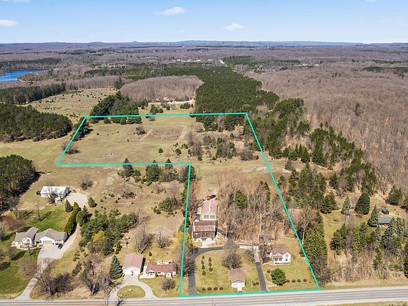 Where can you find location, acreage, outbuildings and high-end style all-in-one? Right here - At 10578 N. Long Lake Rd. in Traverse City, you can find all of this and more! A beautifully updated farmhouse and multiple outbuildings, framed by 13.39 acres of incredibly desirable land, this property shines inside and out. The land itself is stunning - perfectly balanced with open & clear fields mixed with rolling hills and mature trees that offer just as much nature as they do privacy. Truly a fantastic place to roam with your toys, soak up the rays during the day, star gaze at night and can't forget to mention the envious sledding hill that will surely create loads of Wintertime fun. Just 1.5 miles from the Long Lake boat launch & beaches and only 3 miles from downtown Lake Ann, this Westside homestead offers superior proximity for so many. From the moment you step inside the home you are greeted by a beautiful entrance that will lead you into a modernized farmhouse that anyone can appreciate. The kitchen is the centerpiece of the home - in the last year, it was taken down to the studs, expanded by approx. 120 ft and now offers gorgeous custom cabinetry, quartz countertops, GE Monogram appliances, Advantium Oven, Mahogany wood island counter and luxury vinyl flooring. Beyond the kitchen updates, the home has received several other updates including bathroom and laundry room remodels, new flooring throughout the home, adding a bathroom to the upstairs, a new boiler for the heating system, adding ductless A/C units, just to name a few. Updates also exude outside with the large barn being lifted off the foundation and reinforced with new foundation and support beams to ensure this historic barn maintains its presence at this wonderful property! The pole building recently had a complete makeover with new siding, all new windows & doors along with a new roof. There is so much more to learn and we can't wait to share this special property and find its new owner!