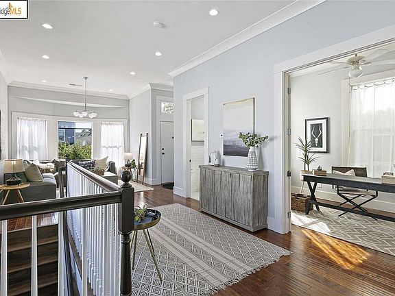 Originally constructed in 1886 & completely reimagined in 2014, this stunning West Oakland home is the perfect blend of historic charm & modern versatility. Large for a Victorian at nearly 1900SF, the interior has been thoughtfully designed to take full advantage of the spacious interior & now offers 3BR, 2.5BA, a stunning LR/DR/kitchen great room & an office/library. Sunlit rooms, high ceilings, recessed lights, hardwood floors, fabulous light fixtures & timeless, high-end finishes are just some of the many amenities in this exceptional home. The large primary BR suite opens to the enchanting backyard. Relax on the back porch overlooking an urban orchard with apricot. peach, avocado, apple & plum trees next to veg beds growing tomatoes, strawberries & raspberries! New plumbing/electrical, roof in 2014. Electronic gates give privacy/security, and the long driveway provides tandem parking for up to 4 cars. Just minutes to Uptown, BART & freeways. Move right into this fantastic home!