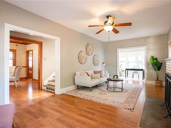 Built in 1914, this charming + historical Dutch Colonial home is located in the heart of the wonderful Drake Neighborhood. You'll be just minutes from downtown + walking distance to local favorites like the Mars Cafe. This home has almost 2000 sq ft of finished space, stunning 2 story entry, gorgeous windows, + original hardwood floors. Spacious family room w/ a brick fireplace that flows to the sunroom and makes a perfect office or space for a virtual classroom. Gorgeous dining room w/ wood beams leads to the open kitchen w/ a gas range and an adorable booth seating. The lower level has a finished space with 3/4 bath and laundry room. Upstairs you will find the primary bedroom with french doors that lead to an attached sunroom. 2 other large bedrooms and a full bath w/ built-in storage are just steps away. The finished 3rd story has a separate AC unit and provides additional living space that would be a great playroom or additional office. Bonus! 1.5 detached garage + fenced in yard.