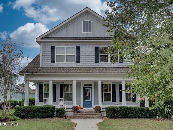 Welcome to Anchors Bend, a highly desirable community located in north Wilmington. Great location close to Mayfaire, Wrightsville Beach and Porters Neck shopping and dining. This 2,884 s/f coastal cottage is situated on one of the larger Cottage Section lots with private alley access, mature trees, and plenty of parking in the large driveway. This popular floor plan offers 4 bedrooms, 3.5 baths. Downstairs you will find a light-filled entry way with 1/2 bath, dining room, dry bar and living room. The eat-in-kitchen has a large island, walk-in pantry, tile accents, and reverse osmosis faucet. All bedrooms are upstairs with a large owner's bed and bath, guest suite with private bath, two other bedrooms in addition to an oversized media room. This is a smart home with Nest video doorbell, camera and thermostats. New dual zone HVAC system recently installed. There is great storage under the stairs and in the garage with built-in shelving. All appliances including refrigerator, washer and dryer are included. Come join this fun community and enjoy the neighborhood gatherings, close-by marinas, large pool area with open air pavilion, grills, and outdoor kitchen. Call today to schedule an appointment!