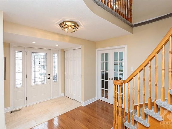 Immaculate and beautifully renovated Minto home located on a quiet Crescent close to the River. The oversized private backyard has been thoughtfully landscaped and is fully fenced. Generous front foyer with circular staircase as the backdrop. Hardwood floors throughout the main floor, renovated kitchen with quartz counters, sun filled eating area with access to garden/yard, wall of pantry. French doors open into formal living & dining room. Family room warmed by fireplace. Main floor laundry/mudroom with direct entry from garage. Second floor has generous master suite with luxurious ensuite bath inclusive of separate glass/tiled shower, sitting area and walk-in. Three additional bedrooms and a tastefully renovated main bath. Large finished basement offers great space for the kids or home theatre/games room. Steps to the Ottawa River and NCC bike paths, close to shopping, parks, LRT, schools and recreation. Upgrade list attached. No conveyance of any offers until 12pm on March 2.Tuesday