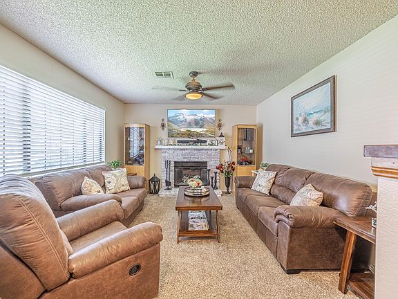 Great single story home on a tree lined street. This 3 bedroom, 2 bath home has 1,422 sq.ft. of living space. The highly functional floor plan features formal living room with fireplace, open kitchen with lots of counter space and cabinets, spacious dining room and family room is great for entertaining. The home features newer laminate wood flooring with tile in kitchen and bathrooms, newer carpet in bedrooms and formal living room. You will notice the good size bedrooms featuring ceiling fans. Backyard features covered patio with above ground pool sold as-is, and block wall fencing. Property also has a 2 car attached garage with water softener and washer/dryer hook-ups. Hurry this amazing starter home/investment property won't last long.