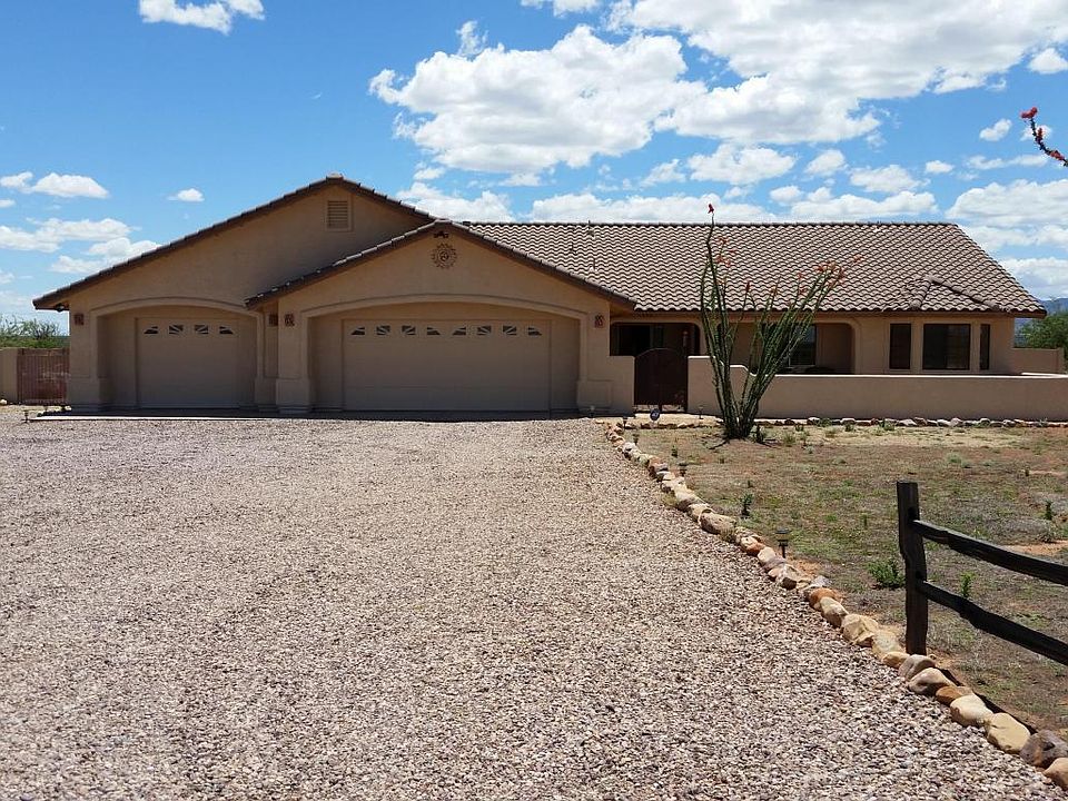Simply Stunning! This 3 bedroom, 2 bath, 3-car garage home on 4 acres is just minutes from Ft. Huachuca and Sierra Vista, AZ. This home features an open floor plan with 20 inch ceramic tile, granite counters, stainless steel appliances, plantation shutters and beautifully tiled bathrooms. The oversized garage with attic storage are perfect for extra storage. The grass backyard and landscaped front with court yard will have you outside enjoying the Arizona weather.. Come see it today!