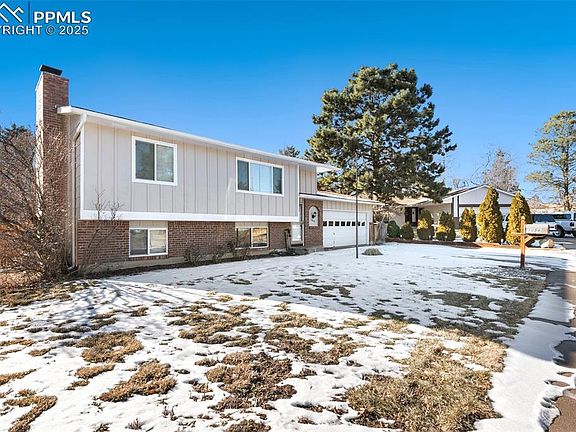 Welcome home to this move-in-ready gem on a large cul-de-sac lot in an established neighborhood! Close to many amenities with easy access to Powers and Academy! This popular bi-level floorpan offers two separate living areas, one on each level, providing plenty of space for relaxation and entertaining. The bright and open kitchen features shaker-style cabinets, wood laminate flooring, and stainless steel appliances, plus French doors leading to a newly stained deck overlooking the huge, level backyard. Enjoy mature trees for shade and privacy, raised flower beds, a storage shed, and an extended concrete sidewalk that wraps around to the front of the home. Plus, a garage service door and a double gate on the side which allows for additional access. Inside, brand-new carpet throughout enhances the home's fresh feel. The spacious master bedroom boasts double closets, while the lower-level family room features a cozy wood-burning brick fireplace. The finished basement incudes two additional bedrooms with an adjoining bathroom. Stay comfortable year-round with central air and ceiling fans throughout. With new siding and exterior paint, plus an included washer and dryer. this home is truly move-in ready. Don't miss this opportunity and schedule your showing today!