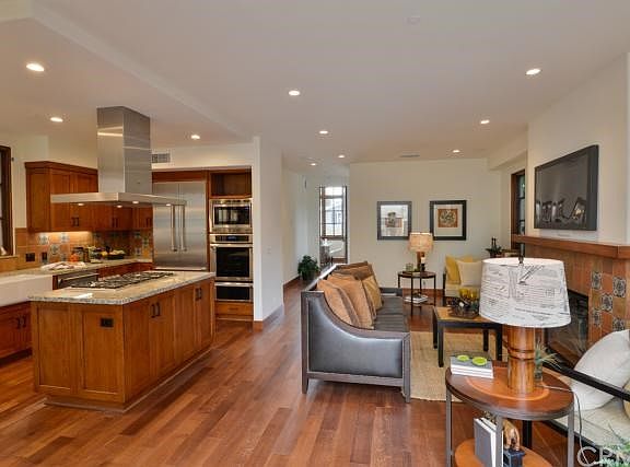 Brand new 2014 custom built home in Laguna Beach Village. Just two blocks to the beach and one block from the Hip District shops, dining, and galleries. This Spanish style home offer 3 bedrooms, with 3.5 baths, a detached 2 car garage with an artist/office studio above, and has a 240 volt outlet to charge an electric car. Oak floors through out the home, with tile flooring in bathrooms. The open kitchen has a burner top island with stainless hood, and offers stainless energy efficient Thermadore appliances, granite counter tops, and Spanish tile back splash. The kitchen opens up to the great room with tiled fireplace, recessed lighting, and French doors out to an entertainers patio with outdoor fireplace. High quality materials through out the home, including dual glazed Sierra Pacific all wood windows with metal clad, and UV protection. Large master bedroom has French doors opening to a balcony that over looks the back patio, master bath offers a double sink granite vanity, with a freestanding porcelain bathtub.