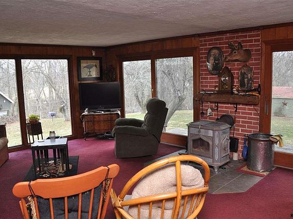 Enjoy watching nature from your living room or sun room. Peaceful views from every corner. Well kept home with 4BR, 2.5 bath, finished basement, and 2-car built-n and 4-car detached garages. Other vacant lots surround home and are available to buyer with purchase of home.