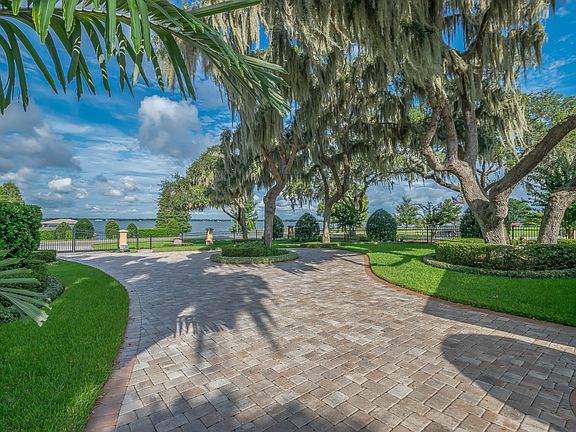 LAKEFRONT HOME...Your own private gated entry, completely fenced yard, paver drive and garage, and best yet... NO HOA! The lake front and the home is lined with trees and offers privacy like no other, wrought iron fencing, gorgeous design, manicured grounds, and pavers accents through the estate/park-like setting with beautiful water views. This 2 bedroom, 2 bathroom lakefront designer home offers travertine floors, countertops and window sills, craftmanship, double-paned insulated windows, and designer interior paint. Most rooms have a lake view. Kitchen is designed for a chef and there is a laundry room conveniently located right off the kitchen. Main room has built-in surround sound speakers. Two bedrooms may limit your space, but this uniquely laid out home feels spacious. Master bath has dual sinks, oil rubbed bronze fixtures, and shower/tub with stone. The dock is amazing and has both covered and open areas for your preference in the sun. You will love it, call it home!