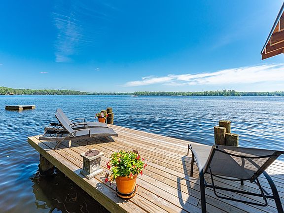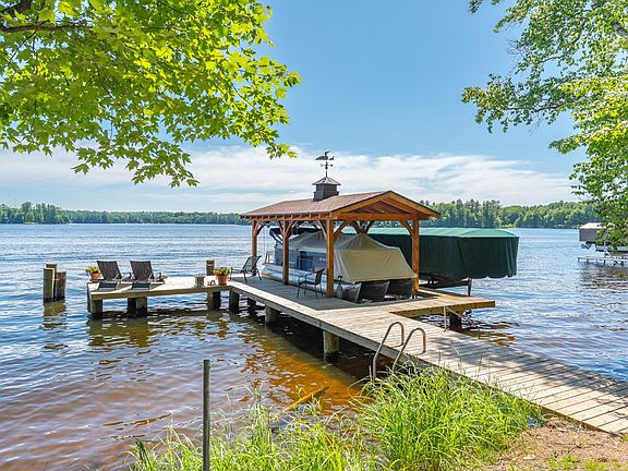 200 feet of south facing sandy frontage on Catfish Lake, part of the Eagle River Chain! To boot, you get a 2BR/2BA 1,800 sq. ft. year round home with a permanent pier, lake shed, and 2 car detached garage. The hillside home features landscaped stairs down to the home from the garage, along with tram for ease of access. The main floor of the home is open and bright with two sets of patio doors to the wraparound lake facing deck. The completely finished basement houses a family room with a wet bar and wood burning stove, a bonus sleeping space, full bathroom and laundry room. The lower level is a walk out with a deck of it's own. View now or forever hold your peace?!