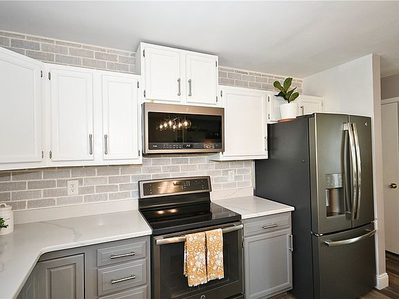 Beautifully renovated open and airy home perched peacefully on a quiet country hilltop. Impressive updated kitchen of your dreams! Trendy tuxedo cabinetry w/white uppers and smokey blue lowers w/brushed nickel pulls, custom brick backsplash white washed for dimension and style, quartz counters, oversized white porcelain apron farm sink, SS appliances and huge center island w/statement fixture! New chic wide plank vinyl flooring flows throughout the main living area leading to the dining room which walks right out to the no maintenance deck stretching the entire length of the home. Fresh neutral colors, 2 nicely updated bathrooms, primary BR featuring double closets, warm cozy finished game room and an oversized 2 car integral garage! The rear deck is the perfect place to entertain or take in the view.. Enjoy a coffee in the am or a cocktail in the pm while watching the sunsets over your nearly 2 acre lot. Great location, easy highway access!