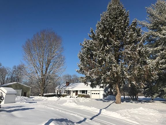 Beautiful county setting in Northfield. Single story living with full basement for that game room or man cave you always wanted. Custom cabinets throughout kitchen and bath. Walls are 2x6 construction so very well insulated and tight. Beautiful fireplace fitted with new Harman pellet stove insert for supplemental heat as well as a separate chimney flute for the basement. Detached 30 ft x 42 ft steel garage in addition to single attached garage for storage of your toys or for a small business. New hot water heater installed January 2020. 6.72 acres that encompasses Roaring brook with easy access to Rt 10, Rt 63 and surrounding area. Easement for water well rights with neighbor. Neighbor pays annual electricity to homeowner for water pumping fee and splits well maintenance costs 50/50 as required.