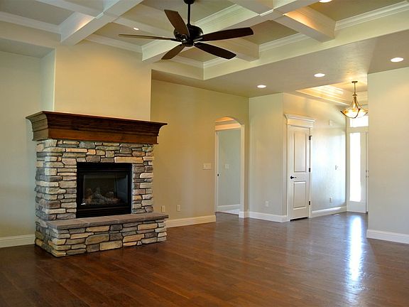 This open, split bedroom floor plan by Ramsey Construction features high end finishes and custom craftsmanship throughout. The open kitchen/living room area boasts a gorgeous ceiling detail, granite, large pantry, hickory hardwood & custom cabinetry. The master suite includes crown molding, a full tile walk in shower, granite and tile floors. Home is complete with a deep garage, flex room, powder room, and a large covered east-facing patio. Photos are similar.