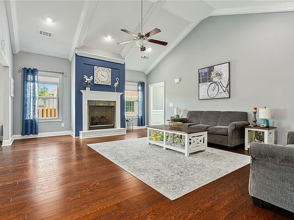 This beautiful home is located in The Estates with easy access to all things Opelika and Auburn. Also, on a cul-de-sac lot, you are positioned well in the neighborhood. This 4 bedroom 2 bath Lenox plan, built by Stone Martin Builders, begins with a refined foyer entry way, which opens into a spacious living area with a vaulted ceiling. The fireplace adds warmth to this part of the home. Next experience the open kitchen with large center island and adjoining dining room. The kitchen offers built in SS appliances, granite countertops and an expanded pantry. The primary bedroom provides a large bedroom and walk-in closet as well as a luxurious bathroom complete with a double granite vanity, garden/soaking tub, and tiled shower with glass door. The extra bedrooms are spacious with hall access to a bathroom. The back patio offers a covered area to enjoy the outdoors. The custom landscaping makes this home truly stand out as well. The neighborhood pool is near entrance to Paces.
