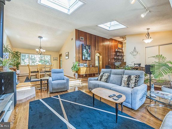 Welcome to your own private resort-like oasis! This truly one-of-a-kind, rare gem is nestled in the heart of Huntingdon Valley. As you step into the inviting foyer, you are greeted by a sunken living room featuring hardwood floors, a cozy wood-burning stove, a triple-section bay window and double skylights in the vaulted ceiling that bathe the space in natural light. The formal dining room also has a vaulted ceiling and offers picturesque views of the gardens and pool through its expansive casement window. You will love cooking in your large eat-in kitchen with vaulted ceiling and skylight and features cherrywood cabinetry and tons of counter space, all thoughtfully designed to overlook the serene gardens and pool area. Just a few steps down, you'll find a cozy den enhanced with 10' sliding glass doors leading to a patio overlooking the beautifully landscaped yard and has a 2 person infrared spa perfect for relaxing in after a hard day. A 1/2 bath is also located on this floor along with a spacious laundry area equipped with front loading washer and dryer and also provides convenient access to the large one-car garage with an automatic opener. Upstairs leads you to the main suite with a spacious walk-in closet and a full ensuite bath. There are two other nice sized bedrooms that share a full hall bath with a double sink vanity. There was a fourth bedroom that was divided and made into two walk-in closets, one being a dressing room with custom clothes and shoe organizers, but could easily be turned back into a bedroom if a fourth is needed. We saved the best for last! Imagine yourself spending hours just relaxing in a hammock by the babbling brook or fun times with family and friends in your beautiful, resort like backyard boasting sculpted gardens, a shaded upper patio and a wood deck perfect for outdoor entertaining. The centerpiece of the backyard is the inviting newly refurbished inground pool set in the gorgeous gardens and mature trees creating a ton of privacy. In the back of the property you will find a bridge that crosses over a peaceful creek, with the grounds extending beyond into a wooded area, offering ultimate privacy and tranquility. All of this plus ample floored attic space, a whole house fan, a spacious wooden shed with a shingled roof and the convenience to shopping and major roadways will make you want to call this your ultimate staycation home!