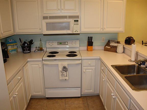 Beautiful 1st floor condo located only a short golf cart ride to the beach. Yes golf carts are allowed. This 2 bedroom 2 bath condo has 9 ft. ceilings, tile floors and comes furnished. The furniture, dishwasher and fridge are all new as well as new paint throughout.. The HVAC system is only a year old. Washer and dryer convey. Walk in closet in the master. Large screened in back porch with ceiling fans and a storage room. This condo is move in ready. Don't miss this great opportunity.