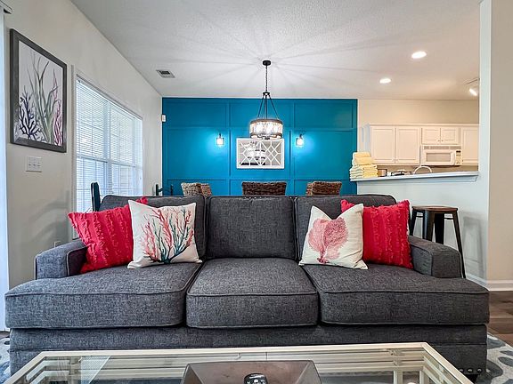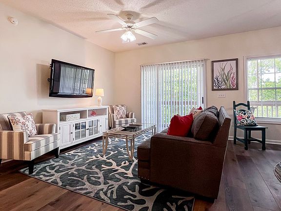Discover serenity in the heart of Cherry Grove with this 3-bedroom, 2-bath condo nestled in the tranquil Seven Oaks condo complex. Located just under 1 mile from the beach, Seven Oaks offers a peaceful community with amenities such as an outdoor pool and a picturesque natural pond area visible from the balcony of this third-floor walk-up unit. Step into a space adorned with new luxury vinyl plank flooring throughout the main living areas, complemented by fresh carpet in the bedrooms. The entire condo has been thoughtfully upgraded with a touch of modernity, featuring new furniture and updated decor. The master bedroom boasts a regal king-size bed and a private bathroom for your comfort and convenience, while the two guest bedrooms each offer a queen bed and share a well-appointed hall bathroom. Embrace the tranquility and comfort of this inviting condo, where the ambiance of Cherry Grove and the amenities of Seven Oaks combine to create a perfect coastal retreat. Enjoy upgraded bed linens, bath towels, washcloths, and kitchen hand towels. Departure cleaning is provided, as well as an Essentials Starter Pack, including a roll of paper towels, a roll of toilet paper in every bathroom, and a packet of dishwashing detergent. Every rental includes Accidental Damage Protection covering you for up to $3000 in accidental damages that may occur during your stay. Located just under 1 mile from the beach, Seven Oaks offers a peaceful community with amenities such as an outdoor pool and a picturesque natural pond area visible from the balcony. This condo is a third-floor walk-up and there is no elevator in the building. This property is in a quiet residential community. Disturbances that interfere with the rights, comforts, or conveniences of other guests or owners at the property will not be tolerated. Large gatherings and parties are not permitted. Motorcycles, trailers, golf carts, and mopeds are not permitted.