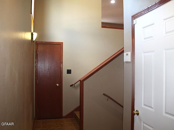 Move in READY! 3 bed 2 bath twin home with attached 2 stall garage. Open floor plan with large kitchen with stainless appliances. Freshly painted walls, new storm doors, built in book shelves, walk in closet. Laundry on upper level. Fully fence yard and large deck. Quiet neighborhood close to UND and on the way to the Air Base.
