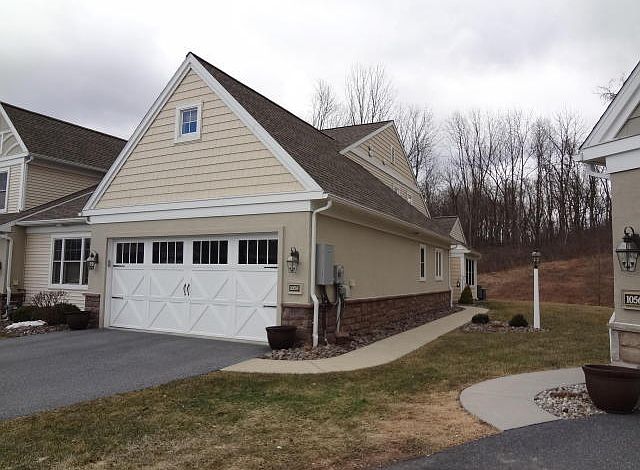 Exceptional 2700 sq. ft. end unit Villa features many upgrades- Brazilian Teak Floors, Gas Fireplace,additional cabinetry & closets, upgraded faucets, lighting fixtures, & custom blinds. Oversized 3 Seasons Room with heat/fan overlooks patio & natural wooded area. Hickory kitchen inc. undercounter lighting, pull out shelves, pantry & Cambria Stone tops. 2nd fl.ideal for guests w/bedroom, loft & bath Alden Place is a 55+ land lease community