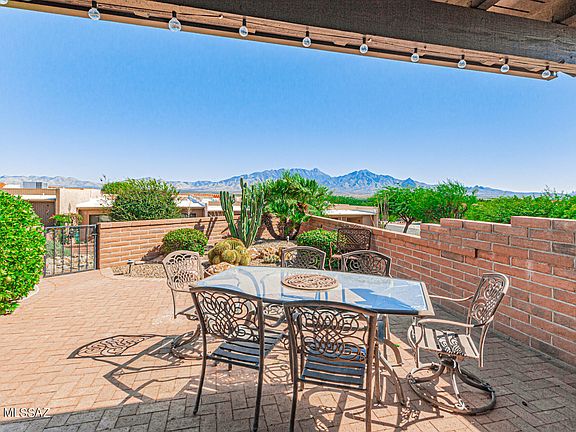 Beautifully updated end-unit townhome offering both privacy and stunning unobstructed views of the Santa Rita Mountains. Located close to the state of the art Desert Hills GVR recreation center and Desert Hills Golf Club with easy in and out access to all of Green Valley. Large tile flows throughout the home (carpet in second bedroom). Open kitchen to main living/dining area and includes granite tiles, stainless steel appliances, gas stove, pull-out cabinetry and a custom alder wood center island.The large primary bedroom features more mountain views, newly-tiled flooring and large walk-in closet. The master bathroom has been updated with a walk-in shower, two sinks and executive height cabinetry. No other unit compares to the high quality features and benefits this unit offers. The low maintenance, professionally landscaped yard includes front and back patios with several lemon, orange, and grapefruit trees.