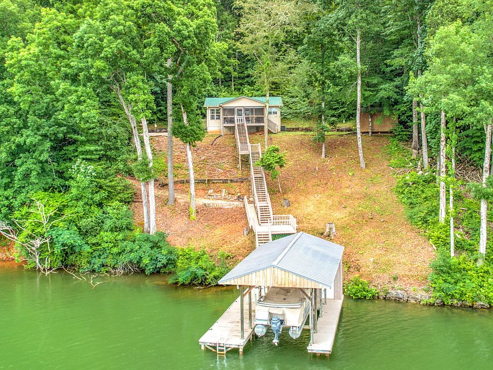 CHECK OUT THIS LAKEFRONT PROPERTY WITH DEEP WATER (est. 15 FT), PLUS A NATURAL SPRING, AND BOAT DOCK WITH LIFT. The house was built in 2011 and is situated on a PRIVATE 2.1 ACRE LOT. The house features an open plan with 2 bedrooms, 1.5 bathrooms, eat in kitchen, and an inviting screened porch overlooking WATTS BAR lake. This great property comes fully furnished (minus some décor' items and personal belongings. There is a gator/gold cart path to the lower deck landing for easy lake access. The boat dock is complete with a storage closet and power lift. Ask about the pontoon boat which is for sale.