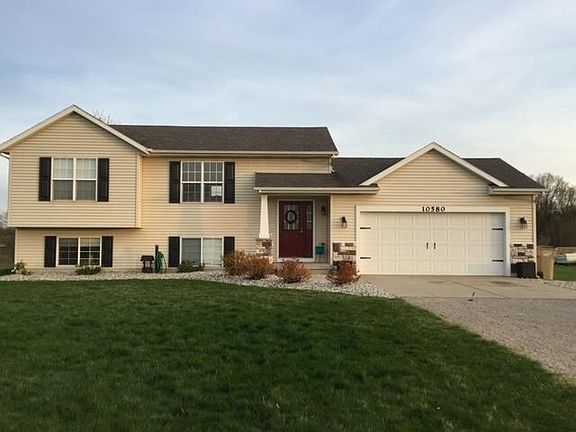 Welcome to 10580 Country Aire! You'll find a move in ready 3 bedroom, 2 full bath home on 2.7 acres with many key updates already in place...updated kitchen w/herringbone tile backsplash, new black stainless appliances & LVP on main floor. Cathedral ceiling and open plan are a nice plus w/large windows and slider to newer 2-tier deck. Finished lower level includes a huge master bedroom suite with private full bath, rec room with wood stove for cozy and efficient heating along with storage/laundry area! Outside is a 10x20 storage shed, chicken coop (fresh eggs!!), raised garden area and underground sprinkling to complete your country living lifestyle! Heated/Insulated 2-stall attached garage! Spectrum Highspeed Internet & Generator Back System. ANY/ALL offers due 1/17 at 3pm.